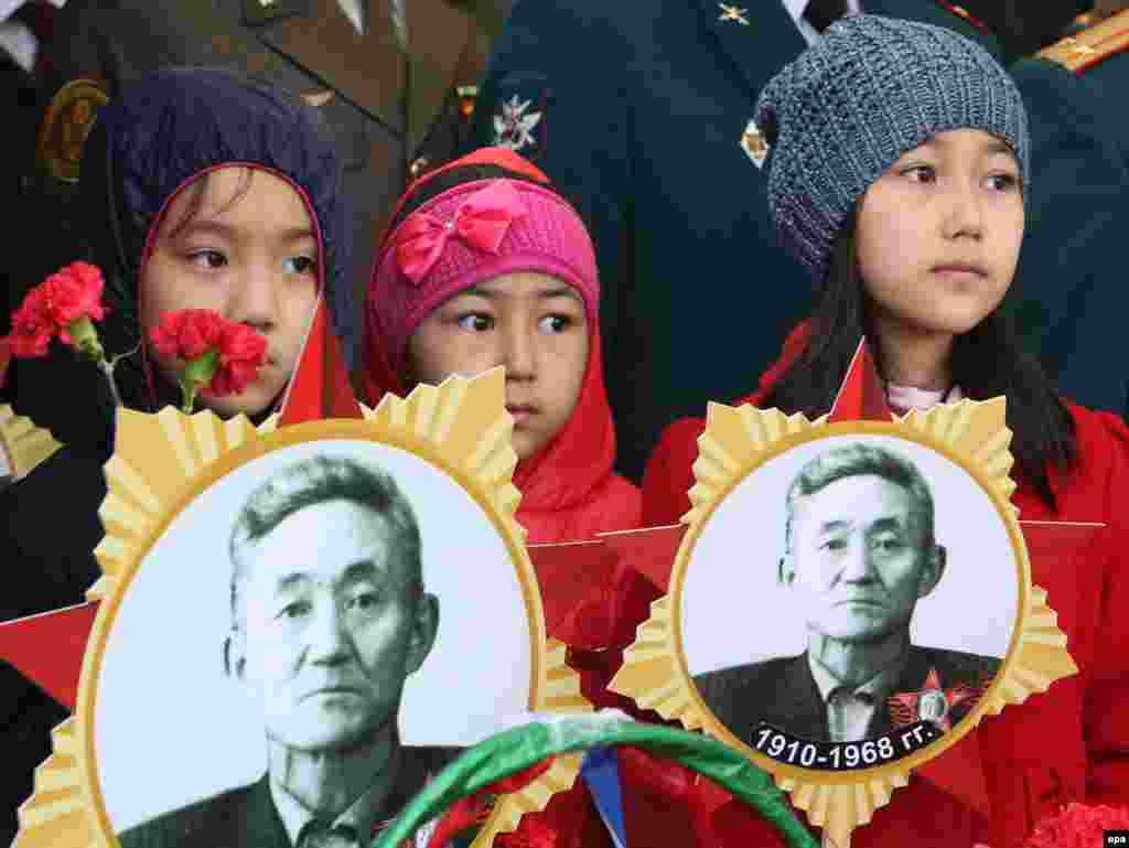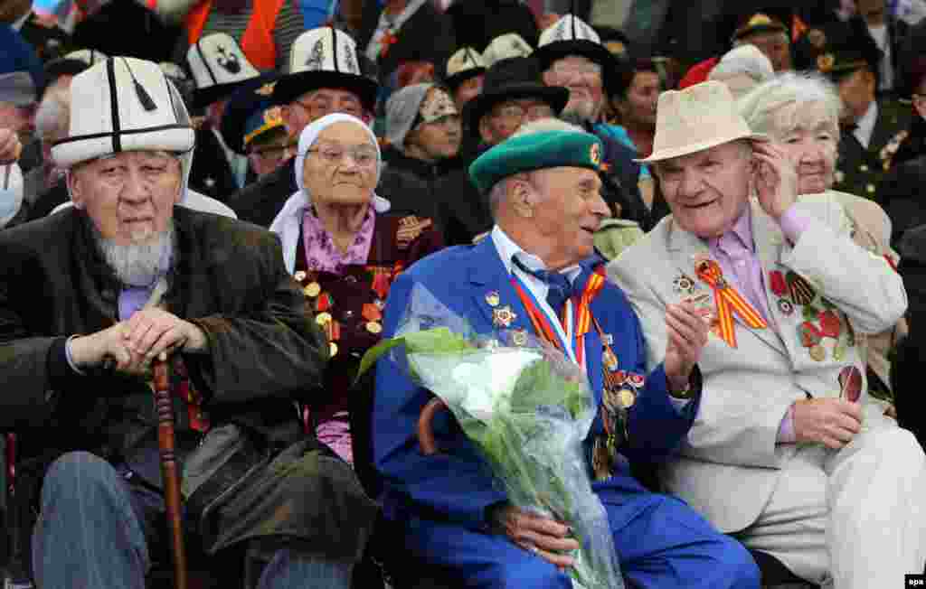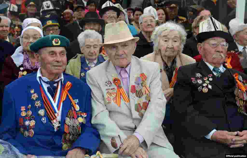 Во Второй мировой войне принимало участие 360 тысяч кыргызстанцев. Из них около 150 тысяч были награждены медалями и орденами. На фронте погибло около 114 833 человек.