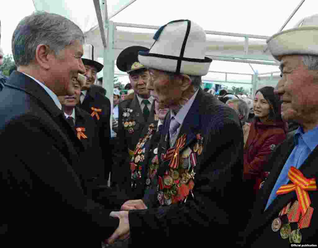 В мероприятии приняли участие президент Алмазбек Атамбаев, премьер-министр Сооронбай Жээнбеков, спикер Чыныбай Турсунбеков, мэр Бишкека Албек Ибраимов, ветераны войны, представители общественности. После официальной части мероприятия ветеранов и участников митинга пригласили отведать солдатской каши из полевой военной кухни, которую развернули на площади.