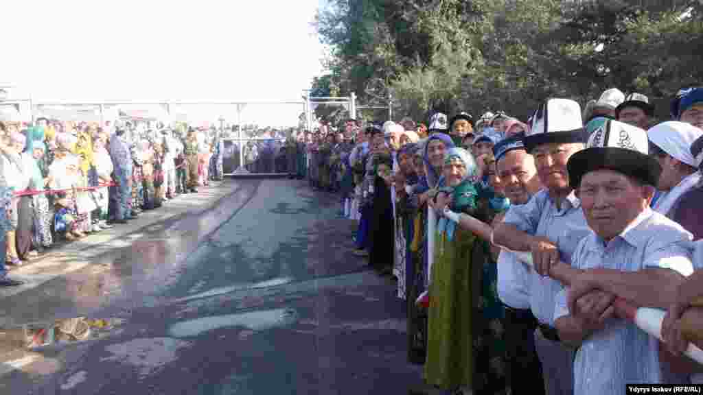 На кыргызско-узбекской границе между Ошской и Андижанской областями Кыргызстана и Узбекистана проходит церемония открытия КПП "Достук".