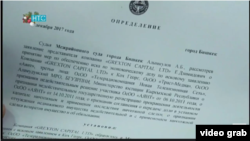 На одном из видео сотрудник канала Каныбек Асанкары уулу зачитывает определение, представленное судебным исполнителем.