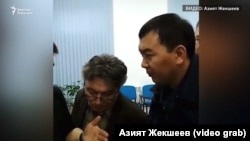 Как сообщил журналист Азиат Жекшеев, около 17.00 пришли лица, которые представились сотрудниками милиции и судоисполнителями. Они показали определение суда и заявление.